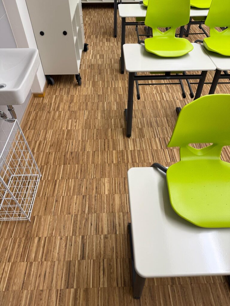 In der Grundschule Kirchroth durften wir Stäbchenparkett inkl. Sockelleisten liefern, verlegen, schleifen und ölen.