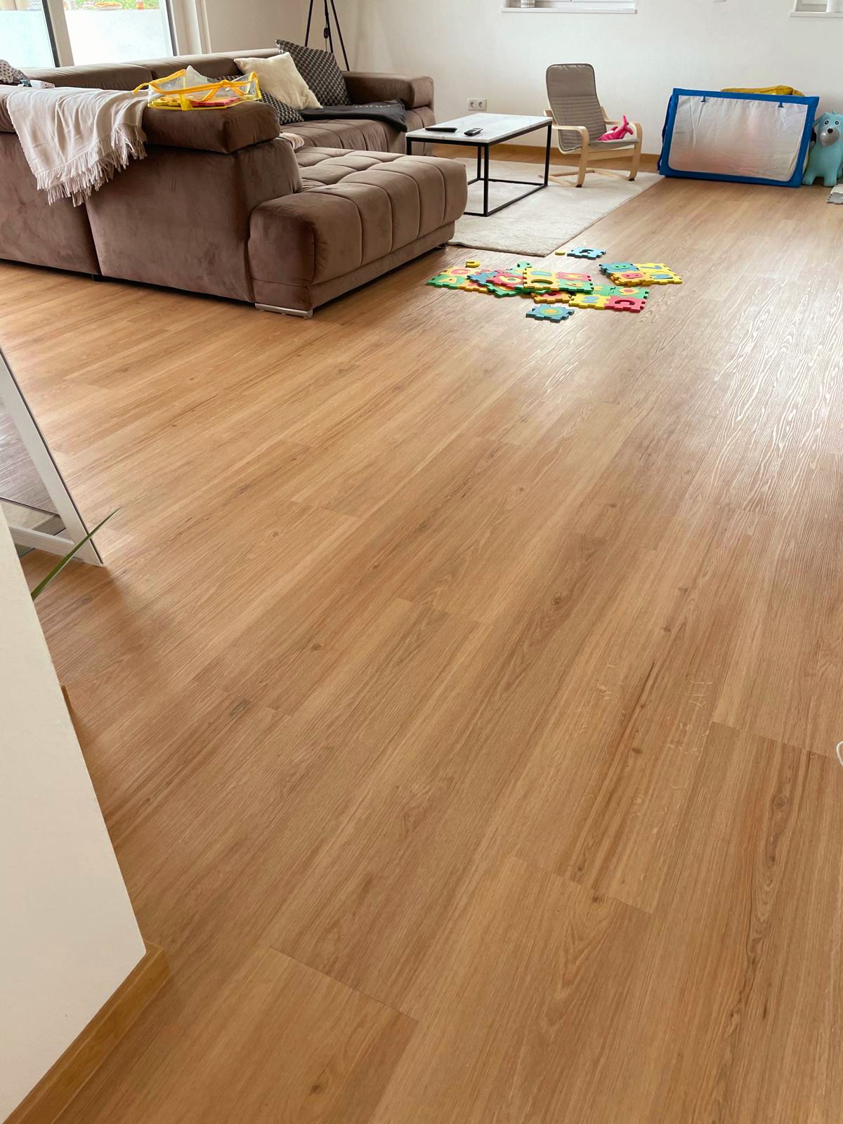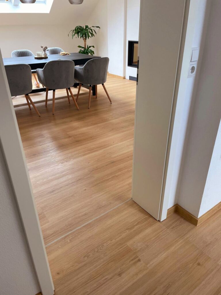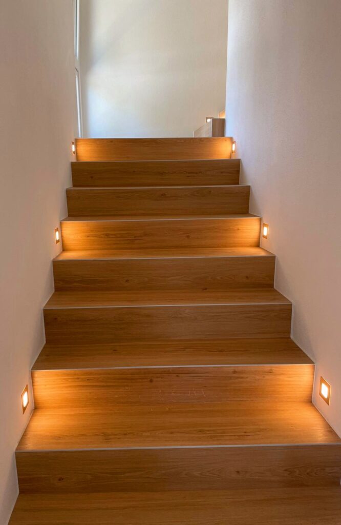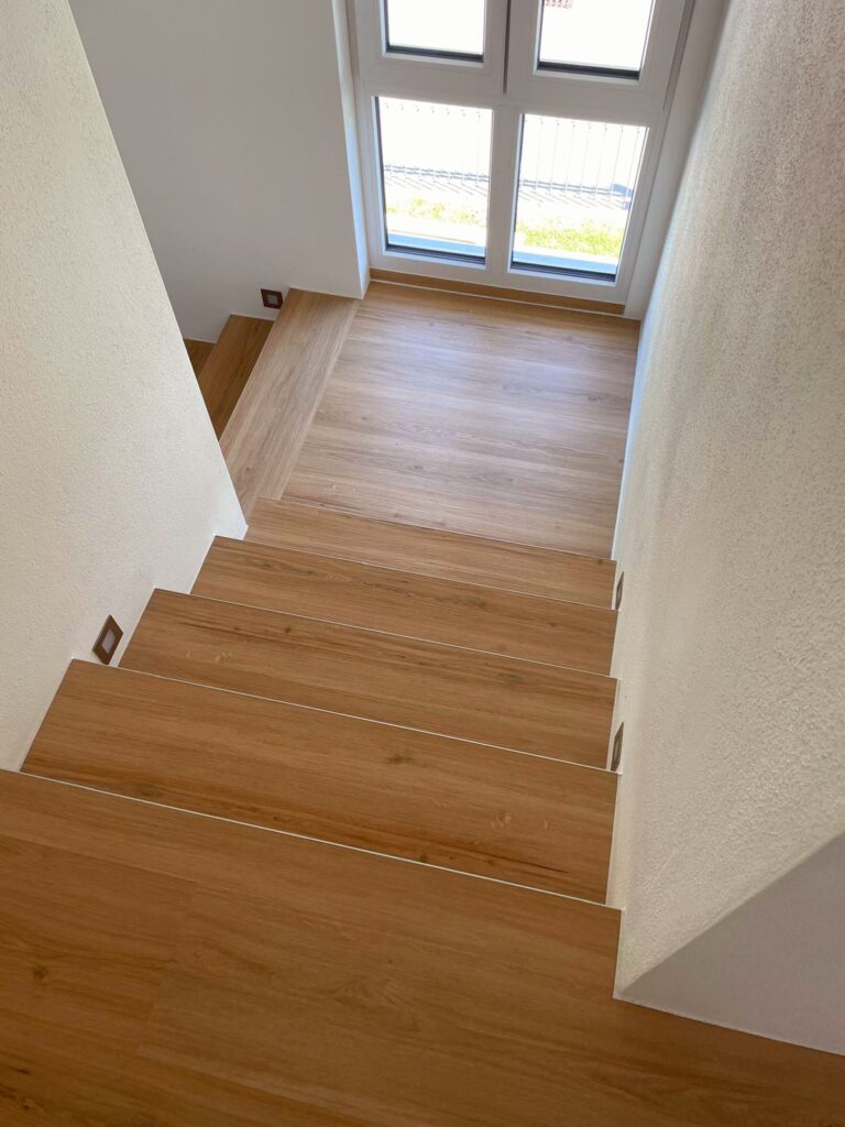 Die Verlegung von einem Klebevinyl-Belag inkl. Treppenverkleidung sorgt für ein harmonisches, einheitliches und warmes Wohngefühl.