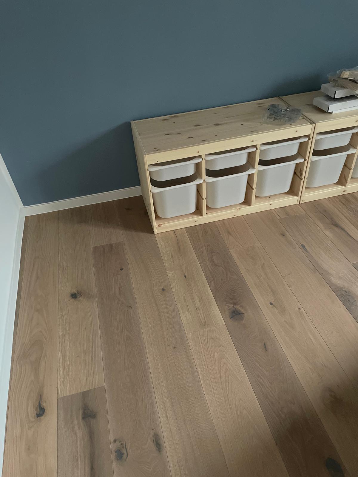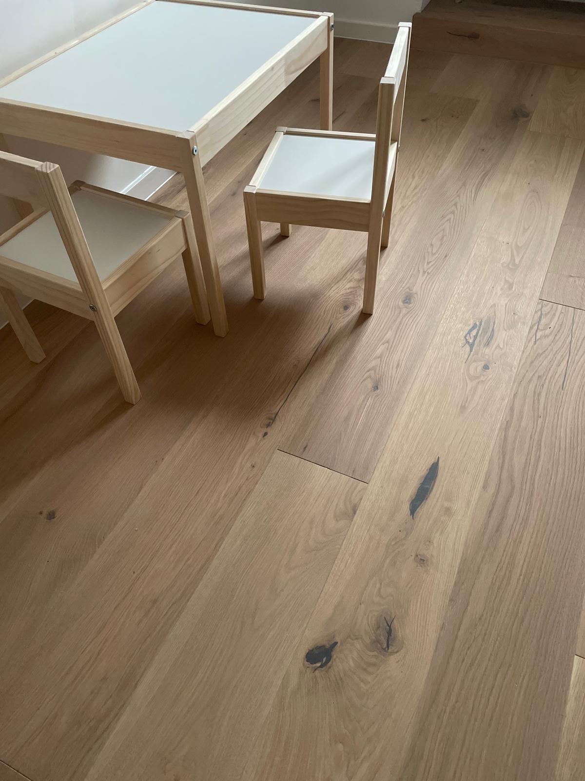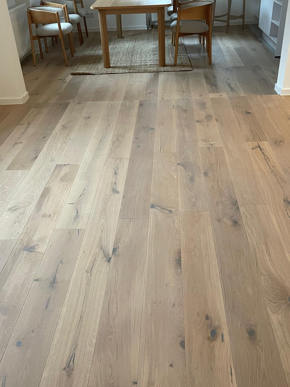 Die weiß geölte Oberfläche der verlegten Landhausdiele sorgt für ein freundliches, helles und herzliches Ambiente.