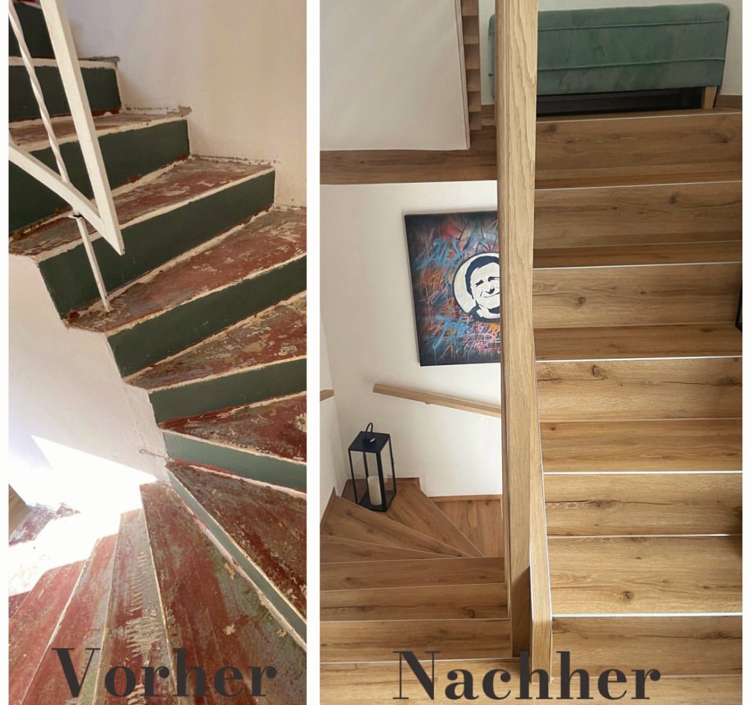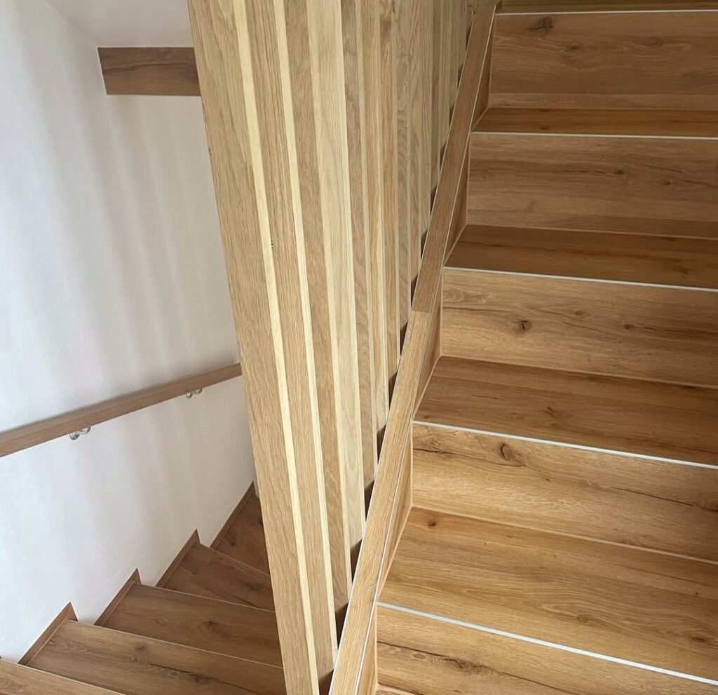 Du willst deine Treppe erneuern? Dann bist du bei uns genau richtig. Neben der Renovierung deiner Treppe liefern wir dir außerdem ein hochwertiges und zeitloses Holzgeländer, das perfekt zu deinem Wohnstil passt.