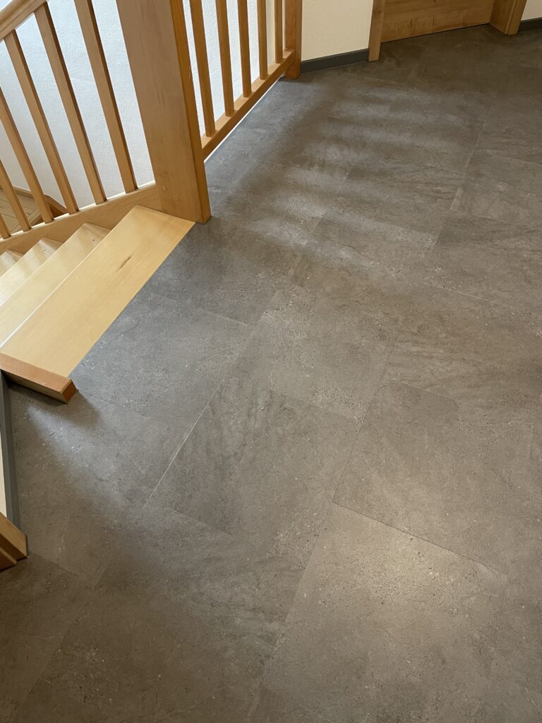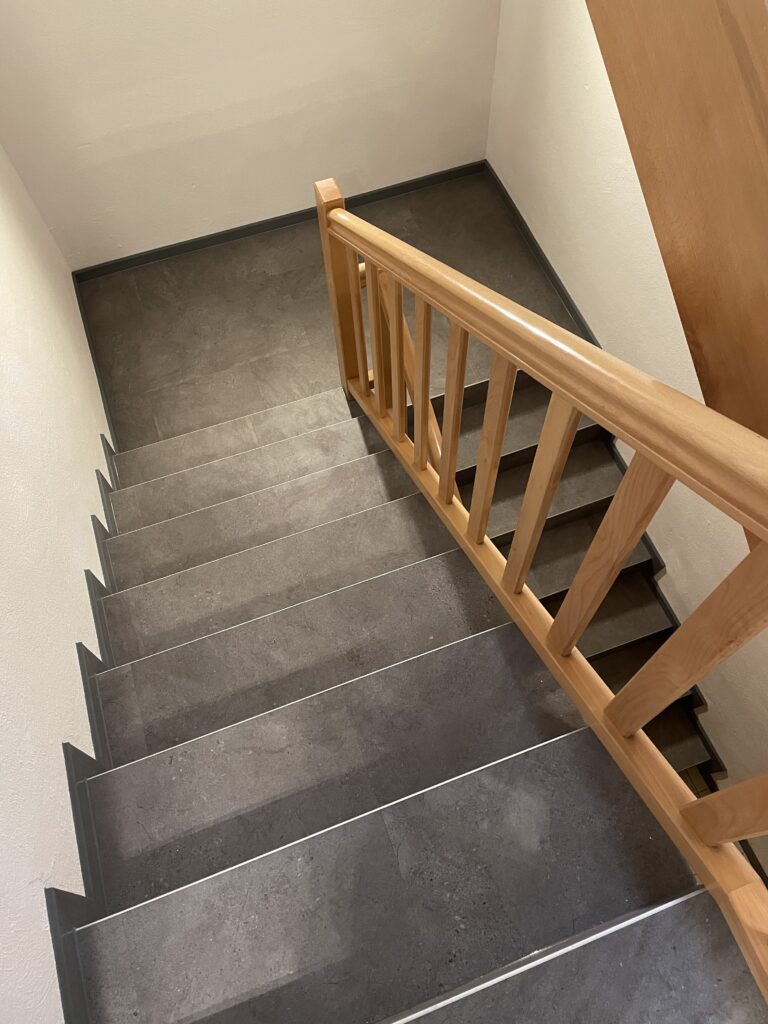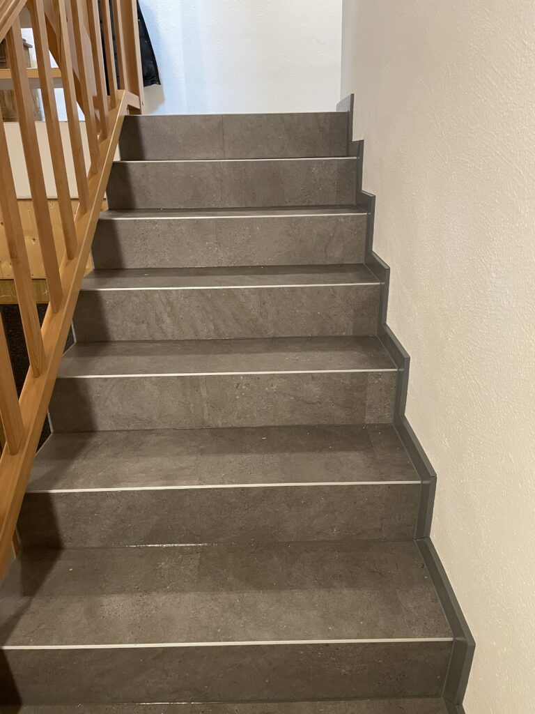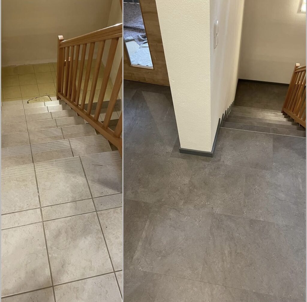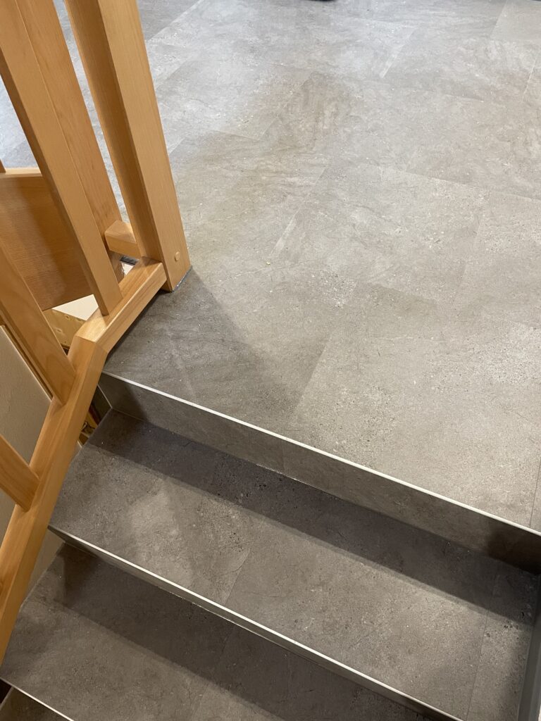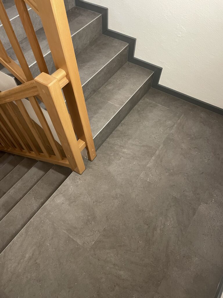 Treppenverkleidung aus Designbelag auf alte Fliesen